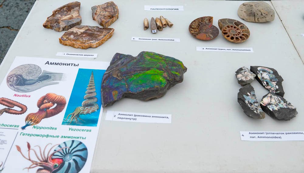 Окаменевшая раковина древнего головоногого моллюска, жившего в морях палеозойской и мезозойской эры. Эти спиралевидные раковины, часто с ребристой или узорчатой поверхностью, варьируются в размерах от нескольких сантиметров до более метра в диаметре. Их расцветка может быть серой, коричневой, золотистой или даже переливаться перламутровыми оттенками благодаря сохранившемуся арагониту. Аммониты служат важными индексными окаменелостями, помогая ученым определять возраст горных пород. Сегодня их ценят не только палеонтологи, но и коллекционеры, ювелиры и декораторы. Из аммонитов создают кулоны, серьги, интерьерные украшения, а особенно эффектно смотрятся полированные срезы, раскрывающие внутреннюю камерную структуру.